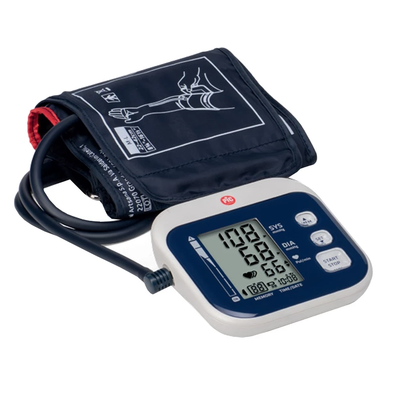 فشارسنچ دیجیتالی دارای قابلیت باد شدن بازوبند یا کاف به صورت خودکار بوده و از طرف دیگر صفحه نمایش دیجیتالی بر خلاف صفحه نمایش عقربهای، اطلاعات دقیقتری را به شما نمایش خواهد داد. از طرف دیگر فشار سنچ عقربهای، فقط فشار خون را نمایش میدهد ولی فشارسنج دیجیتالی پیک سلوشن مدل easyRAPI، دارای قابلیت نمایش فشار خون، ضربان قلب و تاریخ و ساعت بوده که همگی برای شما کاربرد دارد. کافی است بازو بند رو دور بازو بسته و با فشردن دکمه استارت، کاف باد شده و خودکار متوقف شده و با ثابت شدن عدد روی صفحه نمایشگر، میتوان فشارخون را مشاهده کرد. همچنین در پایین صفحه نمایش، تعداد اطلاعات ذخیره شده را نمایش میدهد و با دکمههای روی بدنه میتوانید هر تاریخ و دفعه را به وضوح مشاهده کنید.